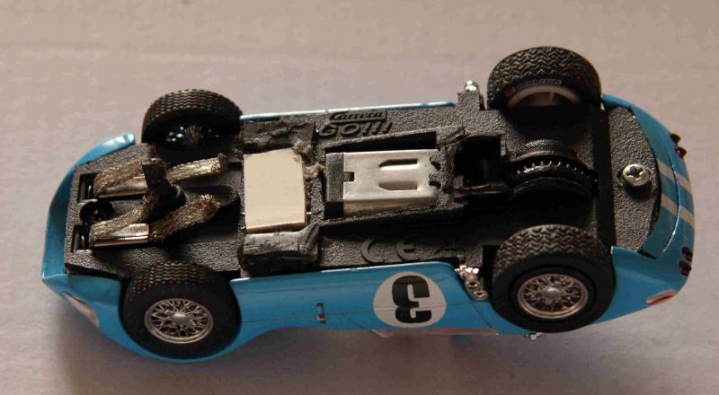 En largeur le chassis est bon, peut être un peu trop large sur les roues arrières. A propos j'ai fraisé les roues carrera pour pouvoir insérer les restes des jantes Altaya.