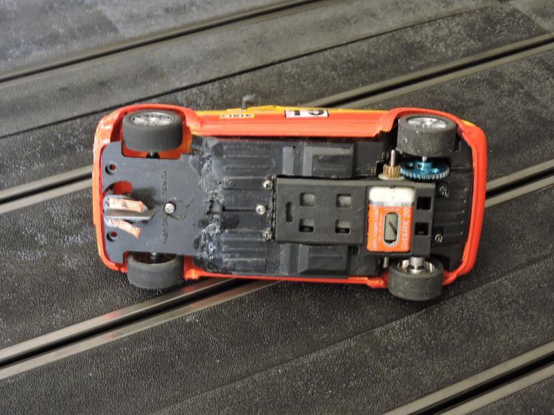 Peinture tamiya comme d'habitude, le chassis est celui de la maquette avec un support Slot it en sidewinder, moteur NSR, l'avant du chassis est un morceau de chassis Fly qui trainait dans la boite à récupération,