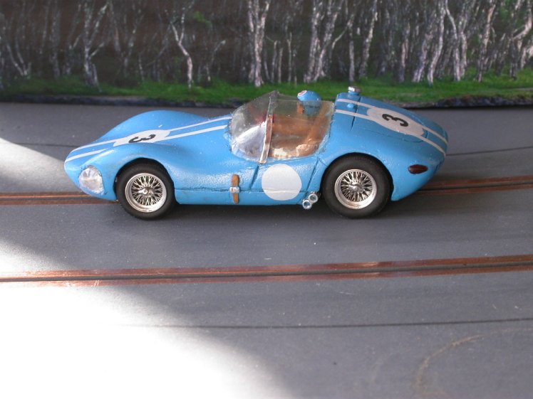 ça elle roule , elle a fait ses premier tours de roues aujourdhuis , le proto au couleur de l' équipe belge pendant les essais à zandvoort , il me reste à monter les feux av et ar mais je suis en panne de led , la n° 3 bleu à bandes blanches roulera demain , elles sont montées sur un chassis sebring de MRRC , jantes BRM et ça roule super