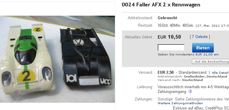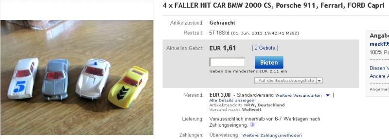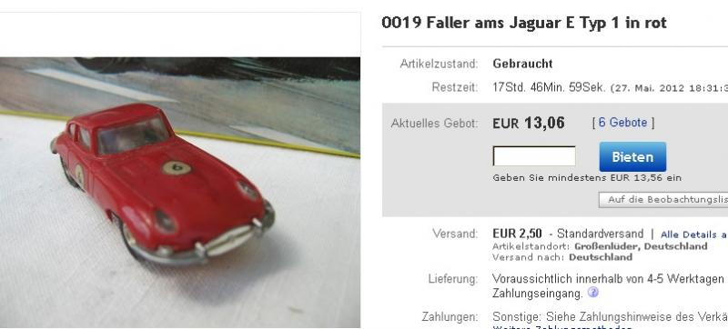Les modèles présents chez Aurora et Faller comme la Jaguar type E sont différentes, pas issues du même moule. Et les Faller sont nettement mieux finies.