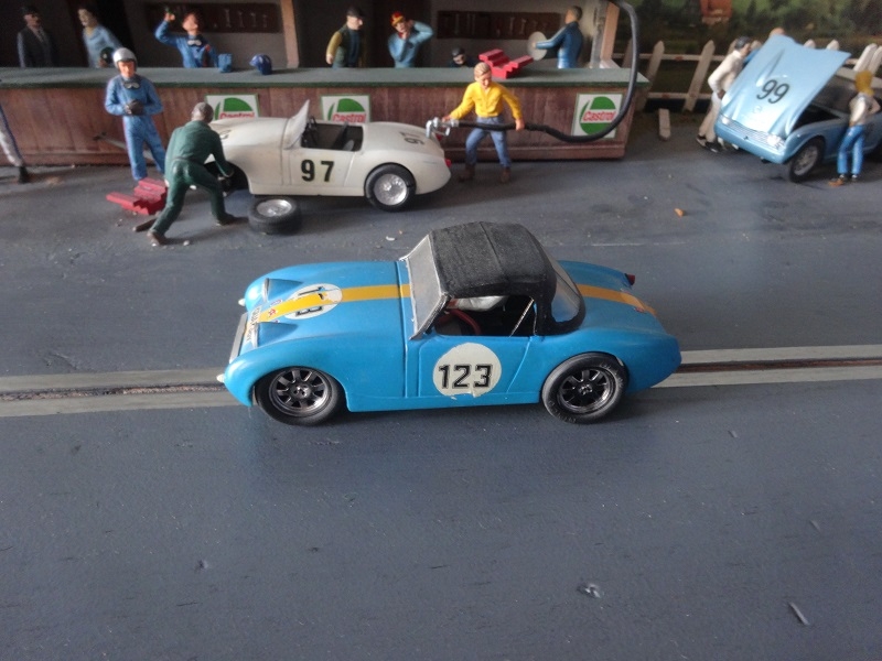 Bien c'est enfin mon tour de vous présenter ma version de la petite Austin Healey Sprite MK1 "Frogeye". Sur ce scratch j'ai voulu mimer un rêve, qui dans la réalité, sur une vraie voiture coûterai une fortune, en tout cas bien plus que je ne pourrais me le permettre.