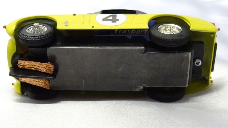 Moteur Mabuchi basique (cage courte)J'ai choisi de lester sous le châssis car sinon la voiture était vraiment trop légère.