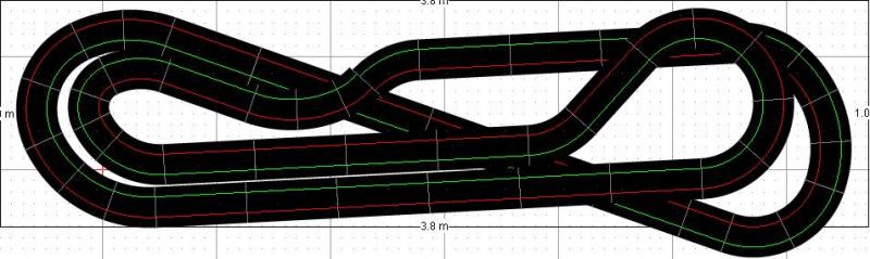 J'ai un espace 4 mètres sur 1 mètre (dans la longueur de mon garage). Je suis en Ninco analogique (possibilité passage digital mais pas envisagé à date surtout dans un garage !). Je peux racheter des éléments de piste donc pas de soucis de ce côté là, et veux privilégier la vitesse donc plutôt typé GT. Je n'arrive pas à me décider pour un tracé, après en avoir tracé de nombreux sur UR 3. Pour avoir un minimum de développé je pense à un circuit à 2 niveaux.
