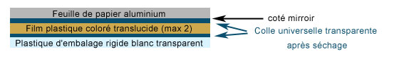 Pour un meilleur rendu utiliser des film de couleur translucide et du plastique transparent très brillant qui permet d'avoir un bon effet miroir.