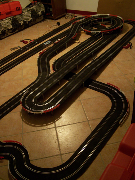 bonjour a tous voici mon nouveau tracé, beaucoup moins de r1 et plein de R2 avec de belles lignes droites. Longueur +de 20m mais je ne l ai pas encore mesuré la pièce fait 5 m/5 m