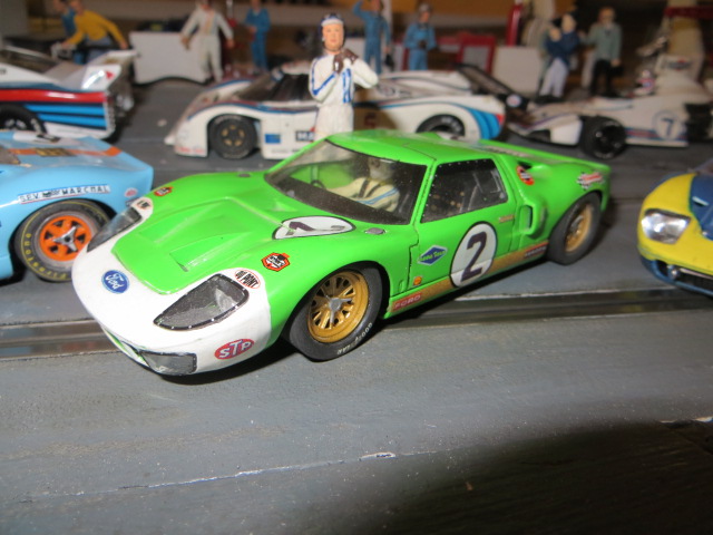 donc voilà, une auto super Belle est qui a du caractère, comme mon autre GT40 Slot-it...je suis ravi mais un peu décu en terme de tenue de route par rapport a ma rouge....en changeant le guide , je devrais retrouver le côté "rail" de l'autre.