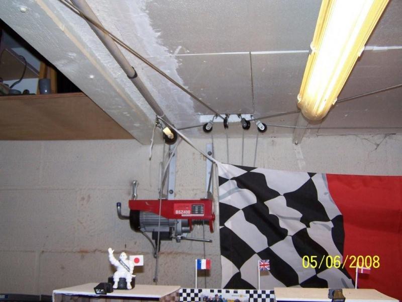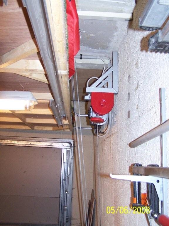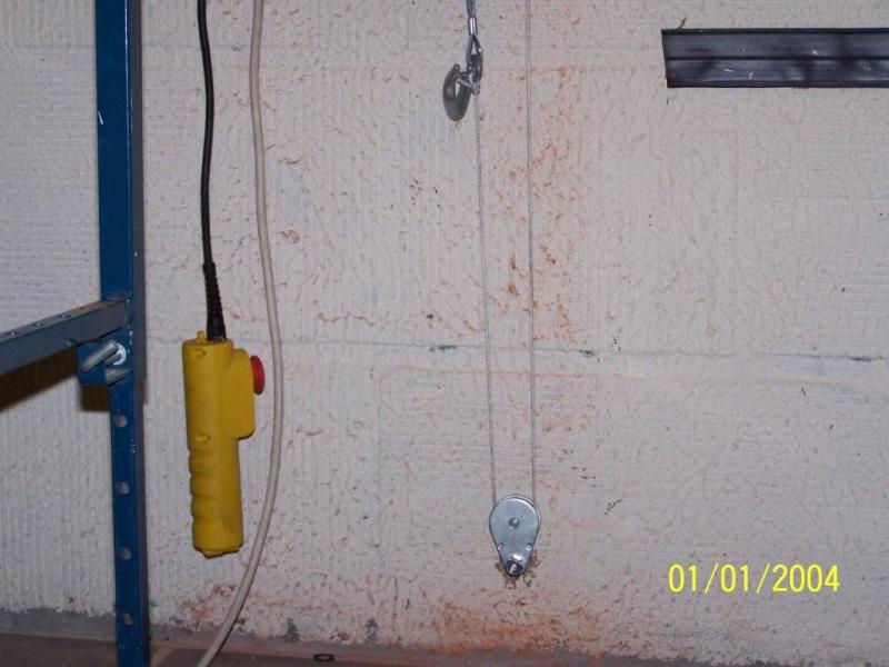 ici le treuil electrique, mis assez haut, avec une poulie en bas,