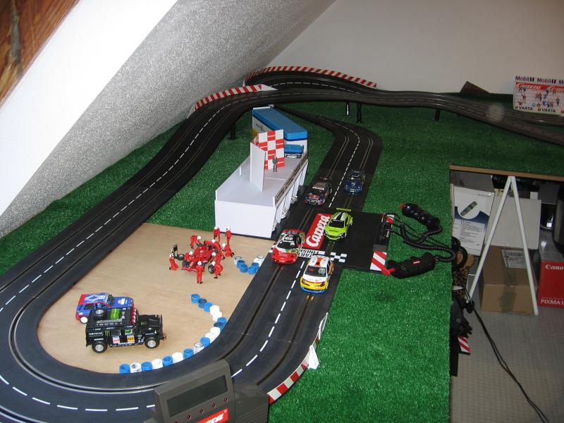 Ton circuit est dèjà pas mal pour un début, tu as l'air d'avoir quand même un peu de place... dommage qu'on ne voit pas le tracé dans son integralité ! Dans les critiques, je ne suis pas fan du banking Carrera, surtout avec une courbe inverse en sortie. Et après, reste à virer les aimants aussi... mais chaque chose en son temps.