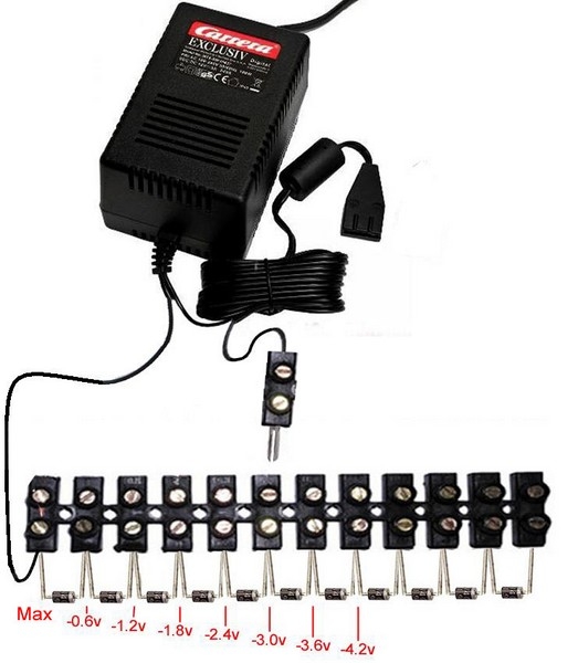 Il y a aussi les transfo des Carrera GO ou Artin qui ne font que 7 à 9 volts