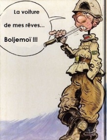 Le Maréchal - Ministre ANATOLI accompagné de son fidèle chauffeur et garde du corps YOURI ainsi que de sa chargée de relations IRINA, belle brune Caucasienne ayant été formée à la diplomatie internationale par Dédé La Saumure et DSK s' est déplacé avec son auto officielle, son inusable VOLGA GAZ M 24 .