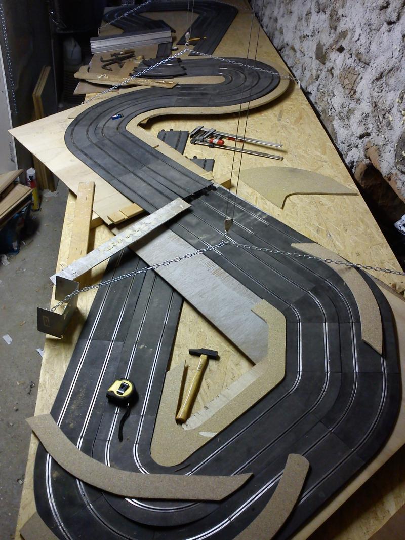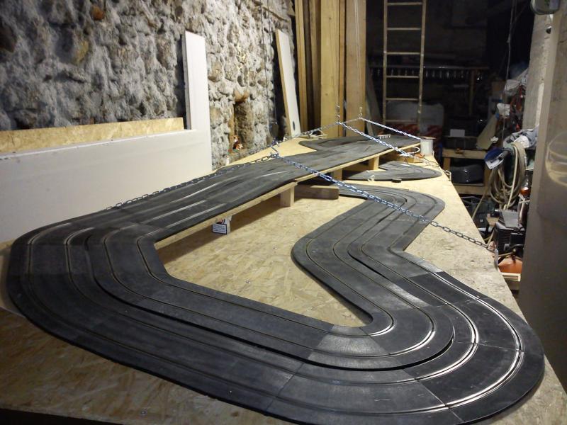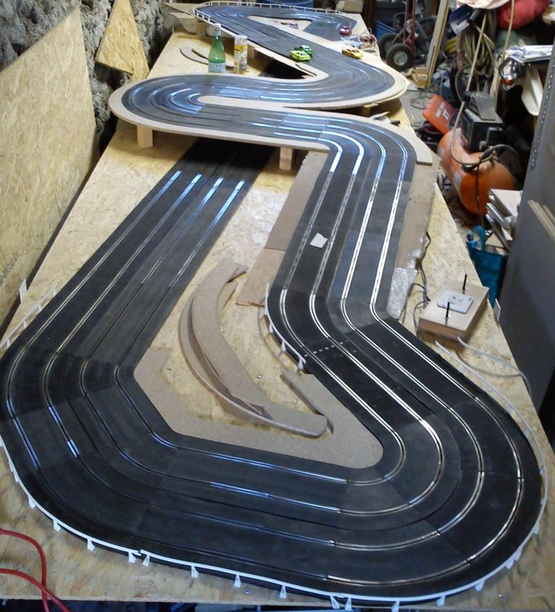 Stf a une bonne idée. Passer la longue droite sous la partie sinueuse est une bonne solution. Ensuite tu n'es pas obligé de découper le MDF de façon à ce qu'il suive précisément les contours de la piste. Ca te permettrait, si tu veux un peu de déco, de construire un petit plateau bien stable sachant que la portion aveugle est la ligne droite et qu'il serait plutôt rare de sortir à cet endroit surtout si tu ne places pas de croisement ou rétrécissement.