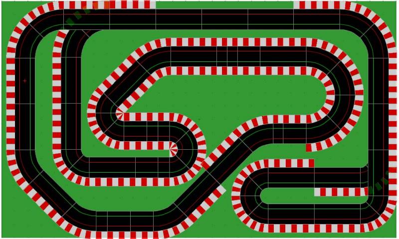 Comme mon circuit n'est pas permanent, je teste des tracés et celui ci est proche de l'optimum pour mon encombrement. Par rapport à la photos, j'ai prolongé les lignes droites interieures