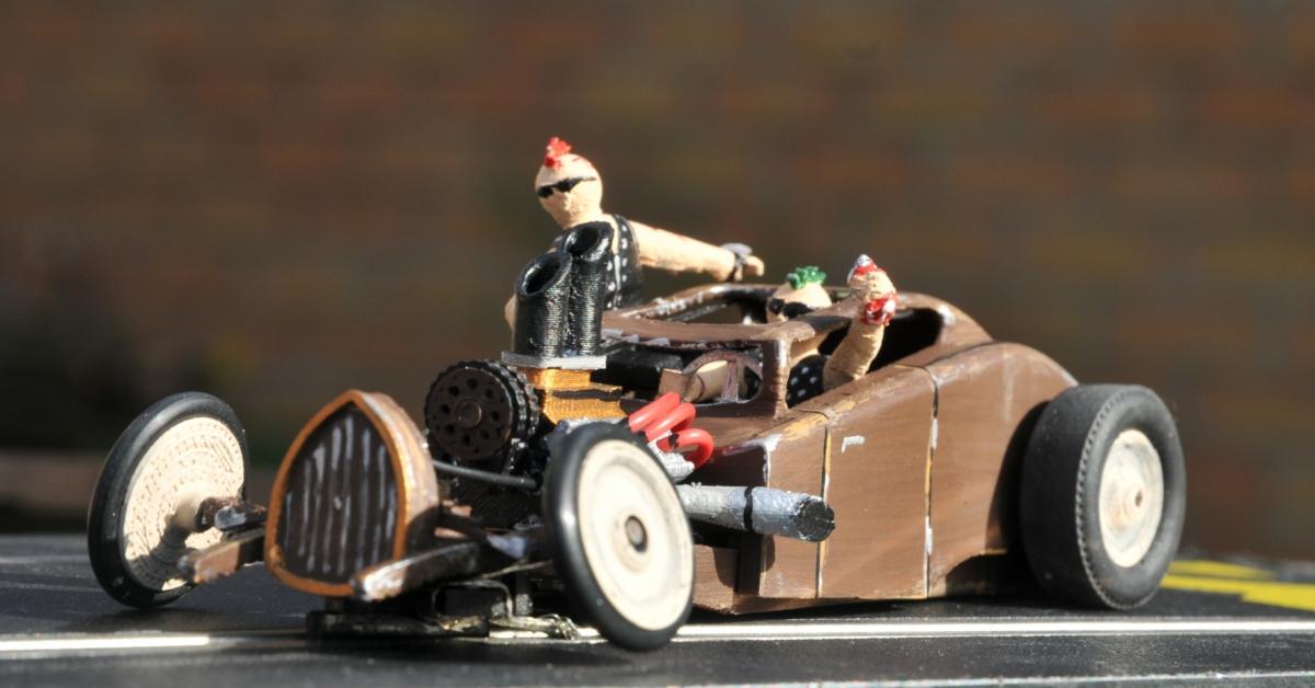 Soyez indulgent pour la finition, à l'époque, je n'avais pas encore d'imprimante résine et ce rat rod avait été imprimé en abs par dépot de fil, les passagers y compris !