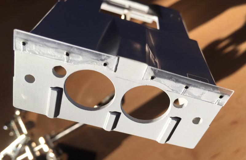 Comme je trouvais le résultat bien meilleur qu’avec mon essais de rivets, j’ai passé deux couches de blanc, remonté et collé l’ensemble.