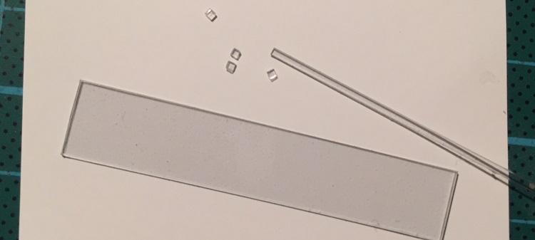 Avec le même gabarit, j’ai découpé la lamelle en carré comme ceci :