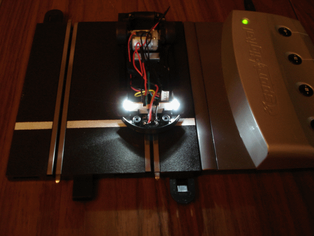Depuis j'ai rouvert la bête pour lui ajouter ses feux arrières rouges. Même principe, mais avec un autre calcul pour la résistance (1.7*2)/0.01=340, toujours en serie les LED !